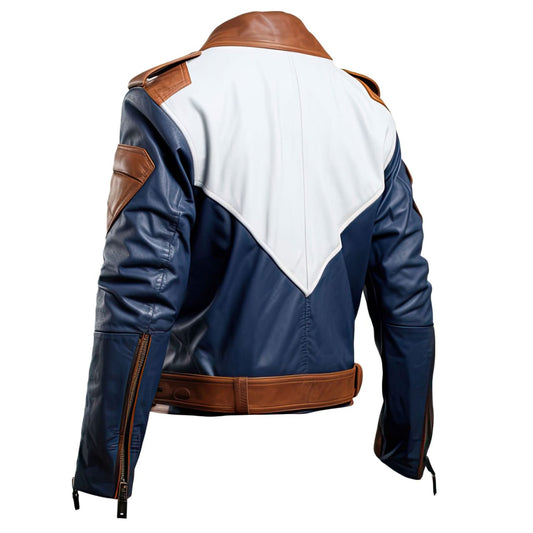 SAVE 11%Men’s Navy Blue Brown Leather Jacket