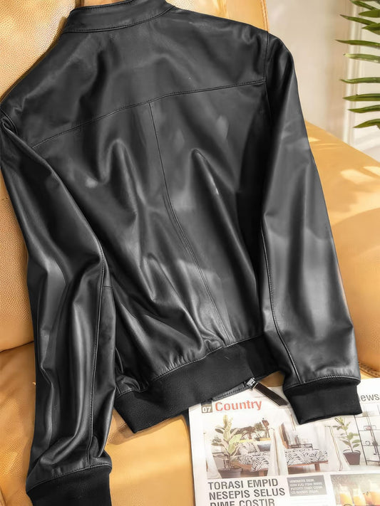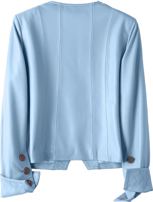 Women’s Pink Genuine Sheepskin Shirt Collar Leather Jacket