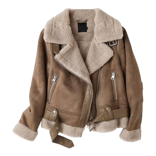 Women’s White Genuine Sheepskin Bomber Leather Jacket