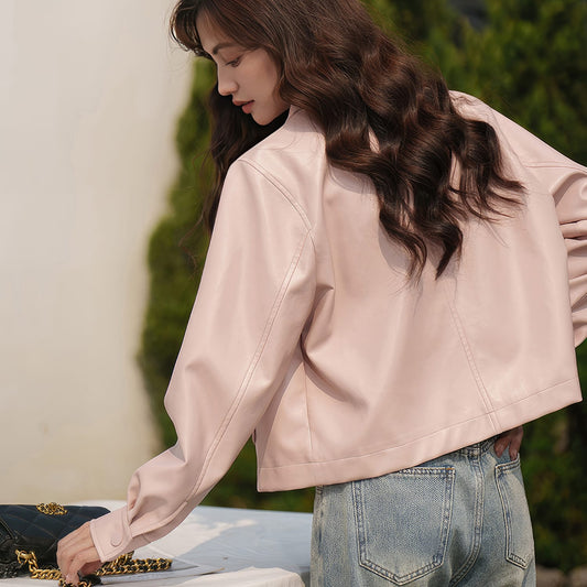 SAVE 11%Women’s Pink Korean Leather Jacket